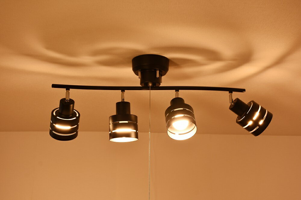 4灯のスチールリングが都会的なイメージを放ち、空間をさりげなくおしゃれにするLED電球対応のシーリングライト。