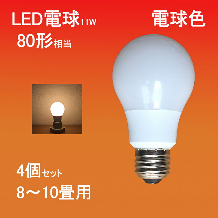 【4個set・10畳用・電球色】 LED電球 11W 1100lm E26 シーリングライト スポットライト に最適